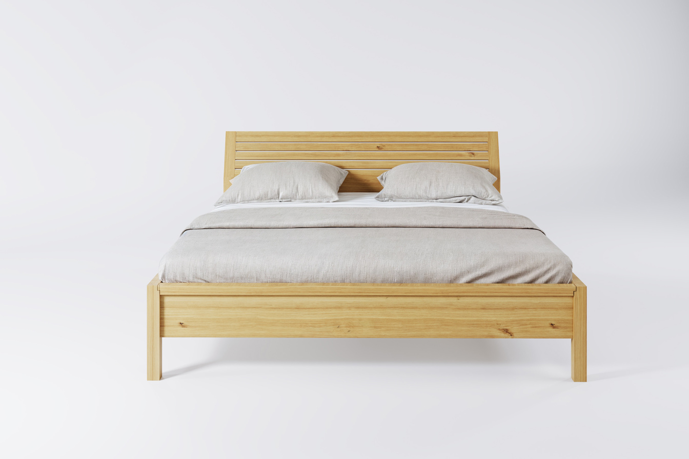- Gdy dysponujesz bardzo wysokim materacem i chcesz go głębiej schować w ramie łóżka, możesz wybrać listwowy stelaż produkcji Manufaktura Drewna wykonany z litego drewna.