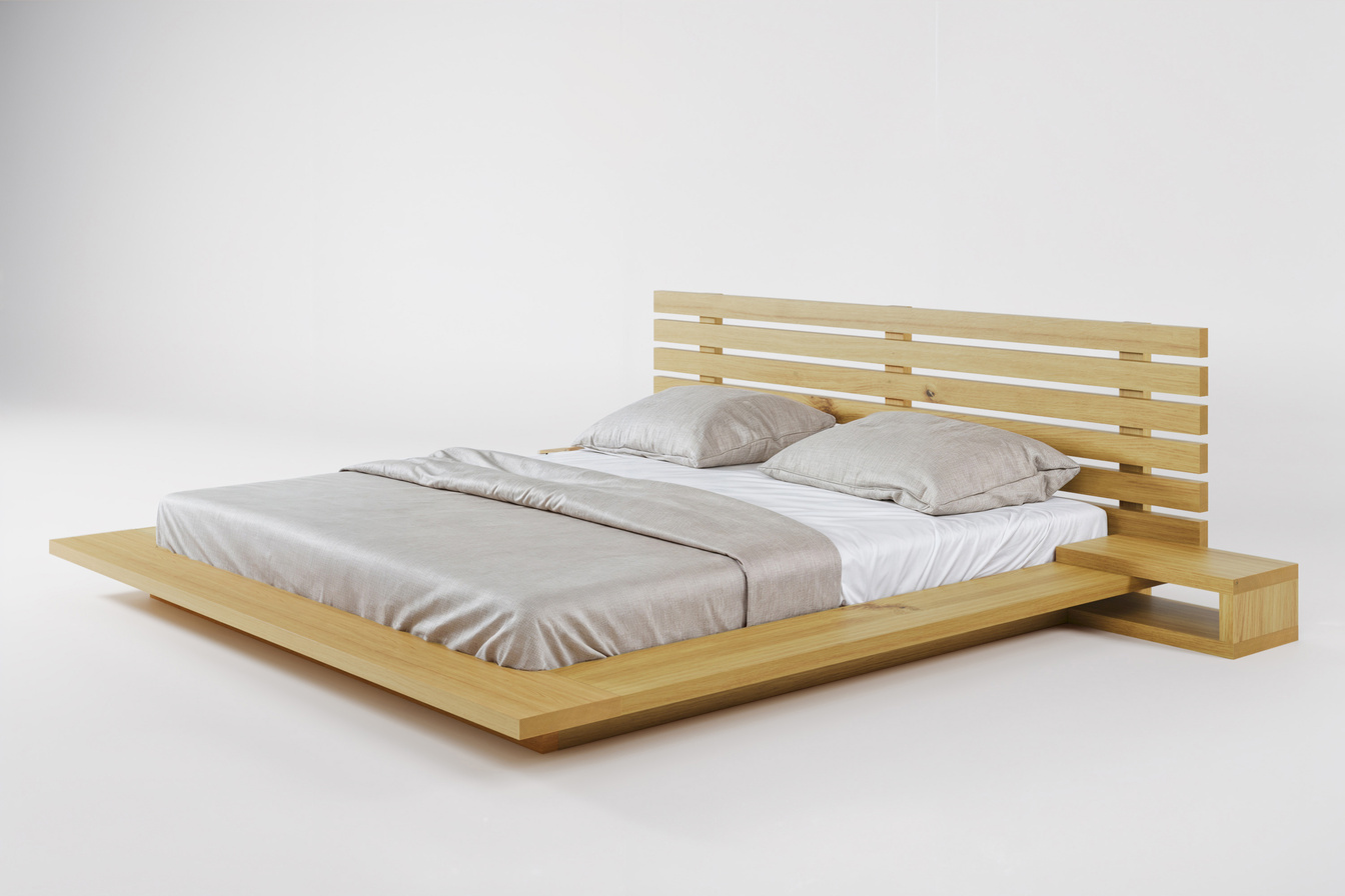 Simple to nowoczesne łóżko, które łączy prostotę formy z pięknym rysunkiem drewna orzechowego.